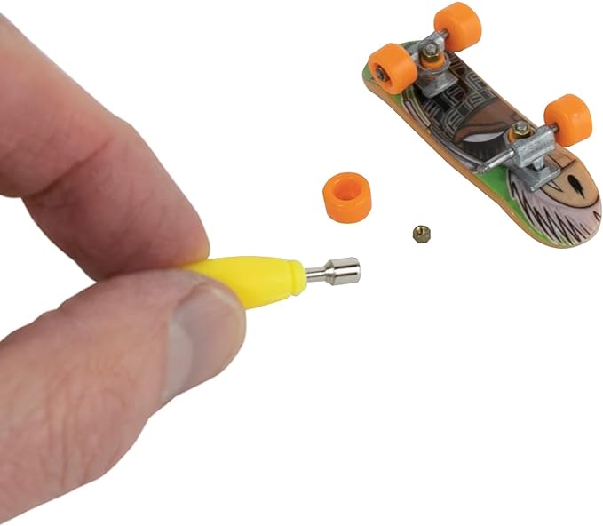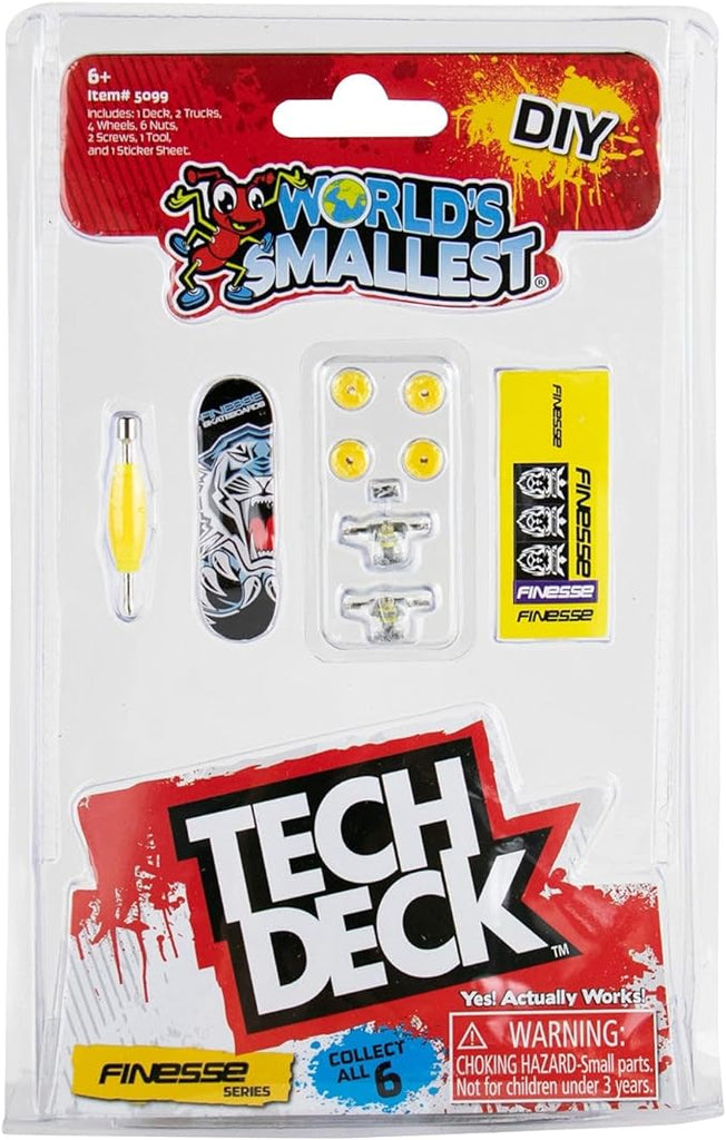 Skate around and perform tricks anywhere on the World’s Smallest Tech Deck! This famous skateboard is miniature and perfect for collectors and fans of the Tech Deck. This set contains 1 x Deck, 2 x Trucks, 4 x Wheels, 6 x Nuts, 2 x Screws, 1 x Tool, and 1 x Sticker Sheet! Each Tech Deck is around 2 inches in length. Collect all 6 styles and show off your skateboarding skills to your friends and family! Dimensions: 5.08 x 1.6 x 0.48 CMS